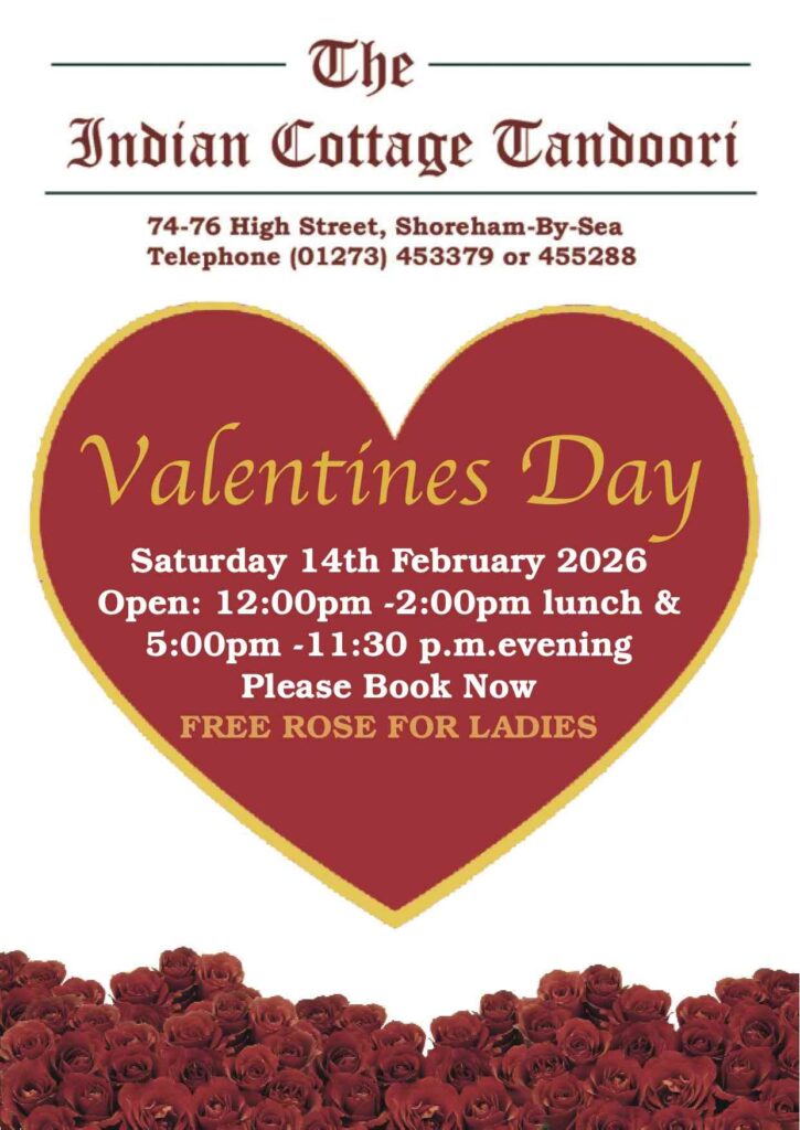 Welcome to the Indian Cottage Tandoori Website. We hope you enjoy your stay and visit us again soon. We are now Open for Eating In,Take-Away Delivery & Collection. Open 7 days a week: 12:00 p.m.- 2:00 p.m. & 5:00 p.m.- 11:30 p.m. Indian Cottage Tandoori, 74-76 High Street. Shoreham-By-Sea, W Sussex. BN43 5DB. Open on Bank Holidays Also.